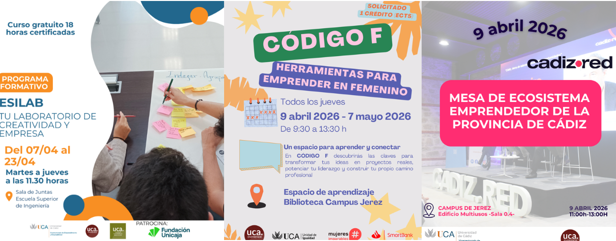 La Universidad de Cádiz pone en marcha el programa ESILab UCA: Cómo validar tus ideas y crear nuevos productos con éxito profesional, una iniciativa formativa impulsada por UCAEmprende y la Escuela Superior de Ingeniería que se desarrollará del 7 al 23 de abril en la propia Escuela (Campus de Puerto Real). Este laboratorio práctico, que cuenta con el apoyo y patrocinio de […]