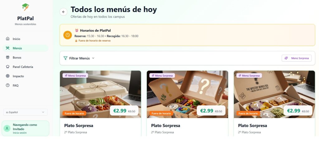 Impulsada por Juan Carlos Pazo (Estudiante del Doble Grado en Derecho y ADE). PlatPal es una iniciativa que tiene como objetivo reducir el desperdicio alimentario en las cafeterías/comedores universitarios, al mismo tiempo que ofrece menús a precios reducidos